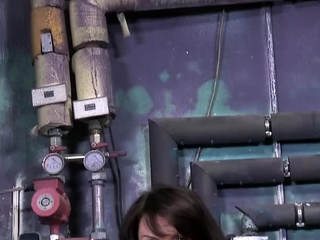 Basement boob play - monster tits on chunky brunette mom