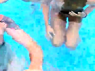 Two sluts suck cocks and get pounded outdoor by the pool liv