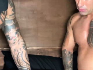 Dom Hunk Damian Dragon Barebacks Sub Caged Jock In Threesome