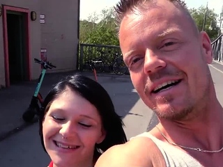 Public fucked German rides cock outdoor