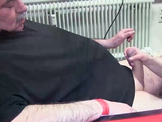 German skinny teen fucks ugly old man in office