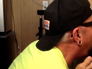 Real gloryhole BJ DILF sucks hard dick