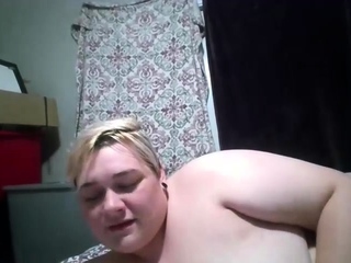 Two blonde BBW lesbians fucking a double dildo in bed