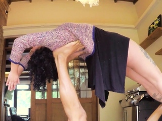 Flexible teen gagging on a huge cock