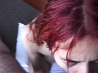 Redhead teen schoolgirl taking big cock deep