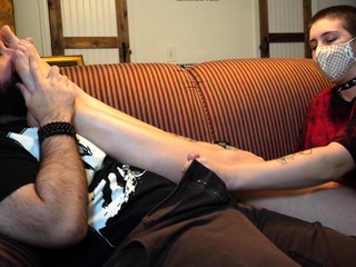 Light femdom and foot fetish play with brunette