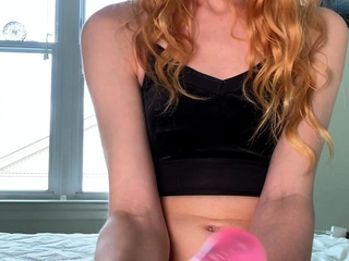 Cute amateur teen girl toying her pussy in bed on cam