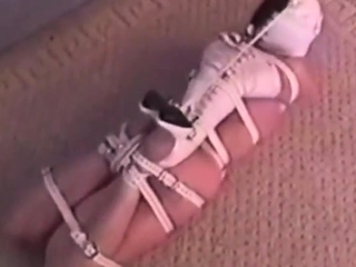 Hogtied Ashley struggling on the floor
