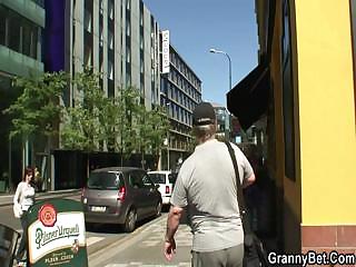 Old granny is banged by an young pickuper