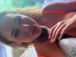 Busty babe playing with her big boobs