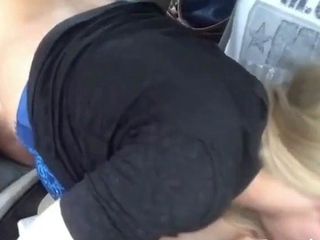 Blonde Amateur Gives Road Head in the Car - Big Cock Blowjob