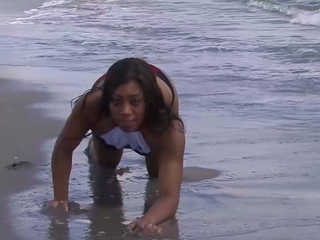 Ebony Pornstar Jayda Foxx Rides Dildo On The Beach