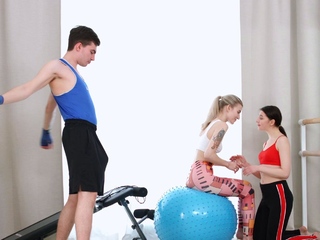 Instead of workout two chicks lure guy into hot threesome