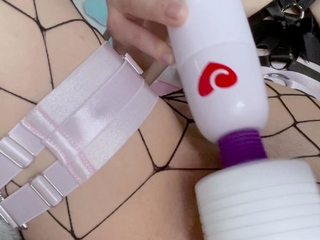 Masturbation close up in heels fishnet stockings and panties