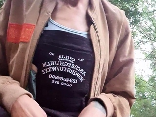 Outdoor solo masturbation scene with curly blonde