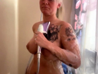 Awesome Big Boobs Blonde Masturbates In The Shower