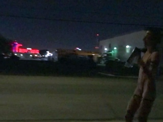 Hot busty brunette masturbates outdoor