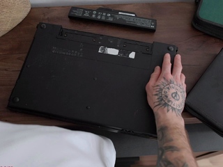 Blonde helps her BF forget about his computer breakdown
