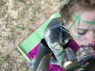 Tattooed couple anal fuck outdoors