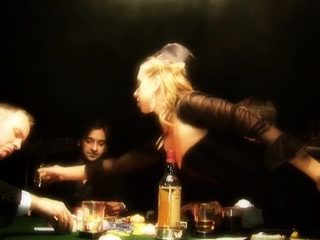 Wicked whore gets skull fucked on poker table by 3 wild men