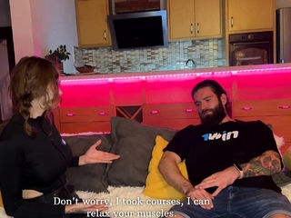 Anal creampie with muscle stud's jizz in ass, muddy gal's
