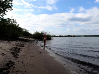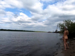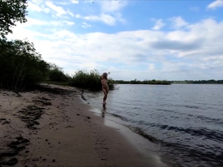 Exhibitionist Blonde Goes Nude on a River Beach