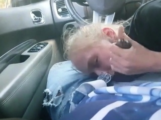 AMATEUR BLONDE SUCKING A BIG BLACK COCK IN A CAR