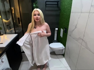 Cowgirl-style hump with inexperienced neighbor in bathroom,